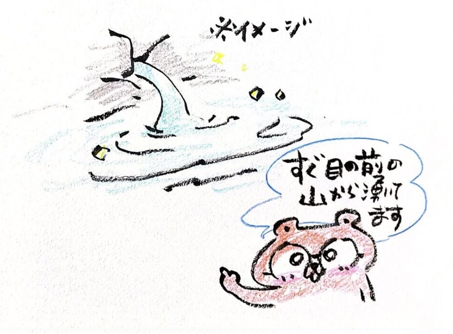 水質がキレイな上流地域では、最低限の処理で 自然そのままの美味しいお水を使用できます。自在館ではすぐ近くの山の湧き水を簡易水道で使用しています。